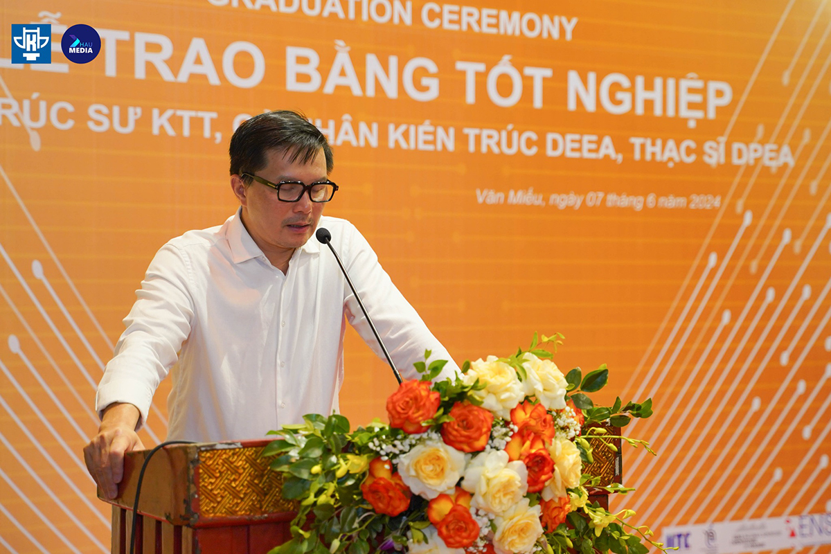 Lãnh đạo Nhà trường đã gửi lời chúc mừng đến các tân Kiến trúc sư, Cử nhân và Thạc sĩ của Chương trình liên kết đào tạo của Trường Đại học Hà Nội. Lễ tốt nghiệp này là một dấu mốc đánh dấu sự hợp tác hiệu quả giữa Nhà trường với các Trường Đại học lớn trên thế giới. Đây cũng là bằng chứng mạnh mẽ cho cam kết quốc tế hóa các chương trình đào tạo, không ngừng nâng cao chất lượng đào tạo các chương trình liên kết với nước ngoài và mang đến cho sinh viên những cơ hội học tập tốt nhất của Trường Đại học Kiến trúc Hà Nội.