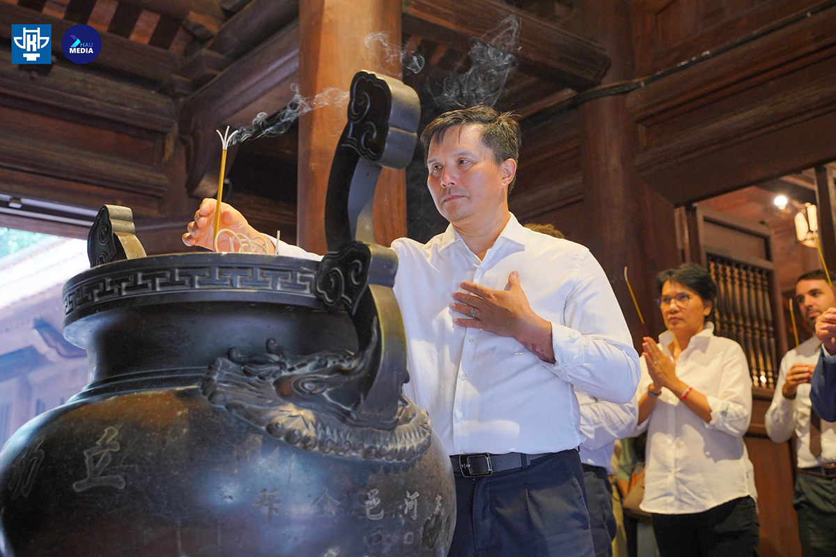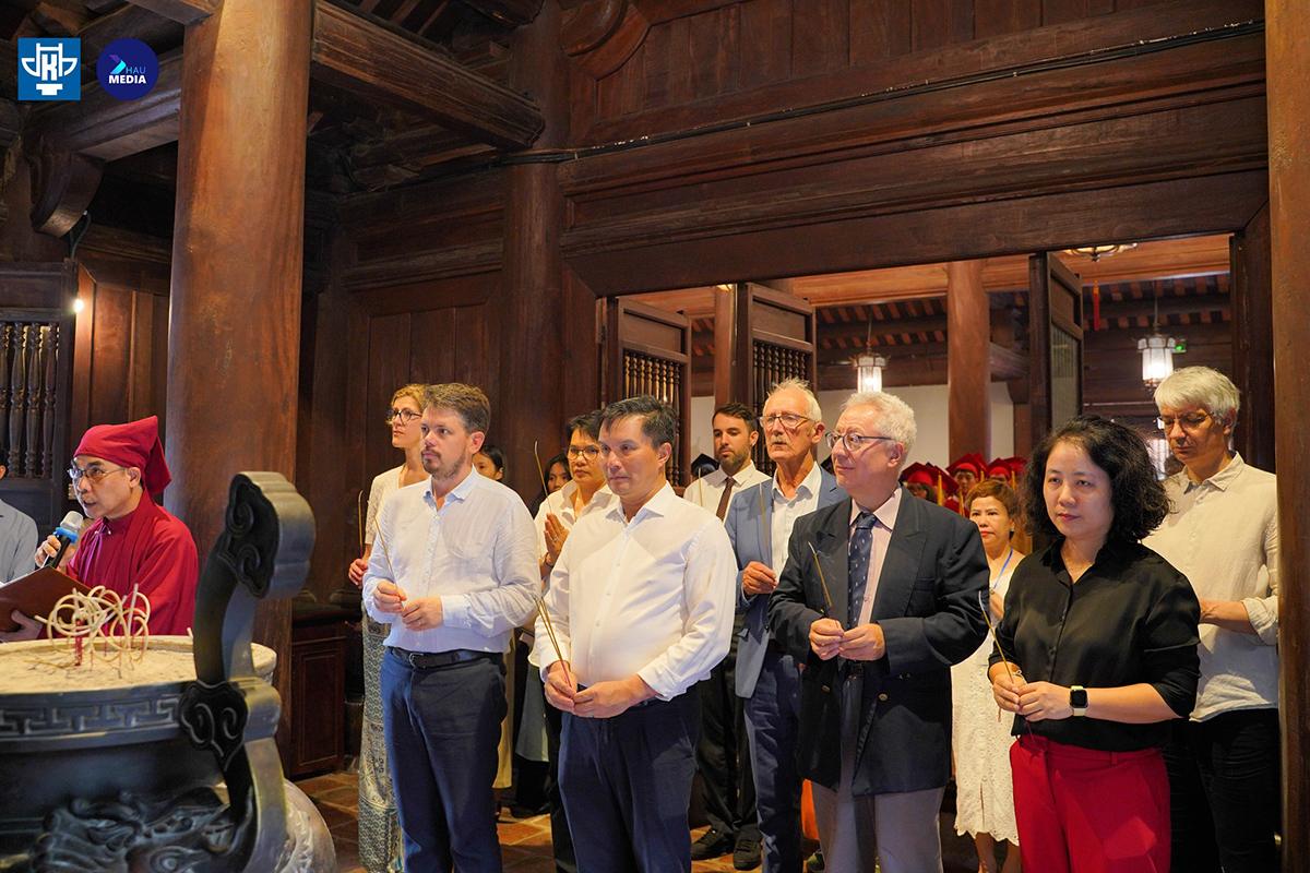 Trong không khí trang nghiêm, thành kính, PGS.TS.KTS Lê Quân - Hiệu trưởng Đại học Kiến trúc Hà Nội cùng các đại biểu trong nước và Quốc tế đã dâng hương tưởng nhớ các bậc hiền tài, hiếu học đã góp phần dựng xây đất nước.