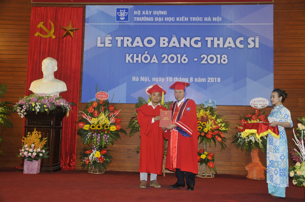 Trường Đại học Kiến trúc Hà Nội có PGS.TS.KTS. Lê Quân - Bí thư Đảng ủy, Hiệu trưởng Nhà trường; TS.KTS. Ngô Thị Kim Dung- Phó Bí thư Đảng ủy, Phó Hiệu trưởng Nhà trường; PGS.TS. Lê Anh Dũng - Thường vụ Đảng ủy, Phó Hiệu trưởng và PGS.TS. Nguyễn Tuấn Anh - Phó Hiệu trưởng . PGS.TS.KTS. Phạm Trọng Thuật - Chủ tịch Hội đồng trường, Trưởng phòng Đào tạo. Dự buổi lễ còn có các thầy giáo, cô giáo lãnh đạo các đơn vị; các nhà khoa học và đặc biệt là các tân Thạc sĩ cùng gia đình, bạn bè và đồng nghiệp.