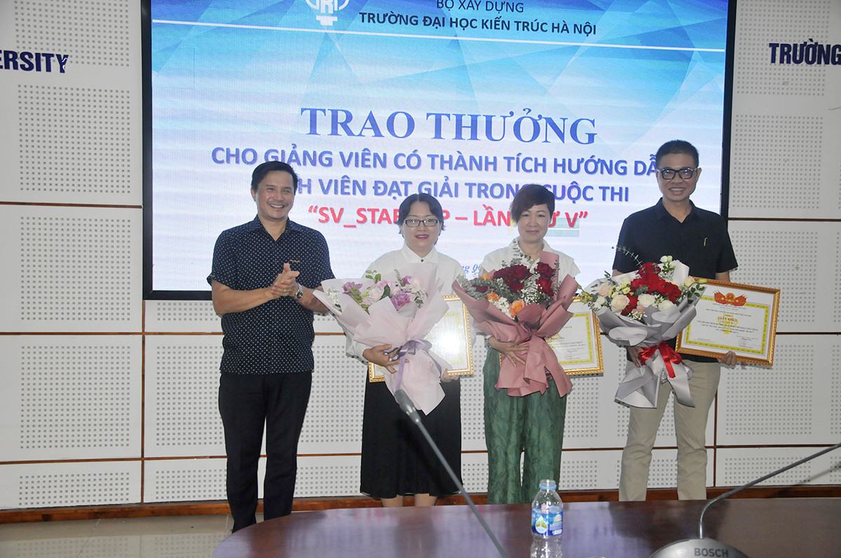 Phát biểu tại buổi công bố Quyết định khen thưởng, PGS.TS.KTS. Lê Quân - Hiệu trưởng Nhà trường đánh giá cao những thành tích mà các giảng viên và sinh viên đã đạt được tại cuộc thi “Học sinh, sinh viên với ý tưởng khởi nghiệp 2022”. Lãnh đạo Nhà trường bày tỏ hy vọng trong thời gian tới, các giảng viên, sinh viên sẽ giành được nhiều giải thưởng hơn nữa tại các cuộc thi mang tầm cỡ trong nước, khu vực và Quốc tế, đưa thương hiệu Trường Đại học Kiến trúc Hà Nội ngày một phát triển lên tầm cao mới.