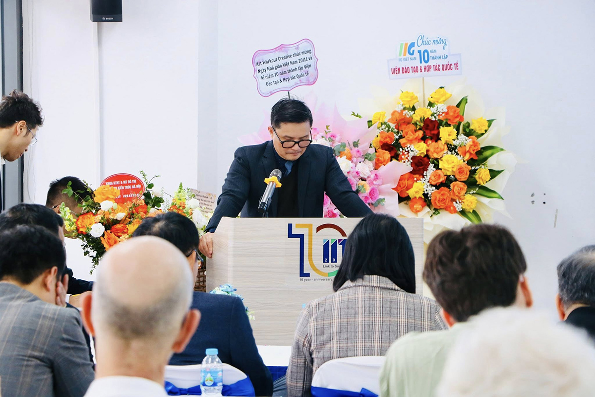Thay mặt lãnh đạo Nhà trường, PGS. TS. KTS. Lê Quân chúc mừng tập thể cán bộ, giảng viên, người lao động của Viện nhân dịp kỷ niệm 10 năm thành lập. Ông nhấn mạnh: một thập kỷ trước, giáo dục đại học Việt Nam bước vào giai đoạn chuyển mình mạnh mẽ với yêu cầu hội nhập khu vực và quốc tế; riêng trong lĩnh vực kiến trúc – xây dựng, nhu cầu tiếp cận tri thức toàn cầu, chuẩn mực đào tạo tiên tiến và kết nối nguồn lực quốc tế càng trở nên cấp thiết. Trong bối cảnh đó, Trường Đại học Kiến trúc Hà Nội đối diện ba thách thức lớn về mở rộng quan hệ đối ngoại, triển khai các chương trình có yếu tố nước ngoài và đáp ứng yêu cầu của thị trường lao động khu vực đối với nguồn nhân lực kiến trúc, kỹ thuật có năng lực hội nhập.