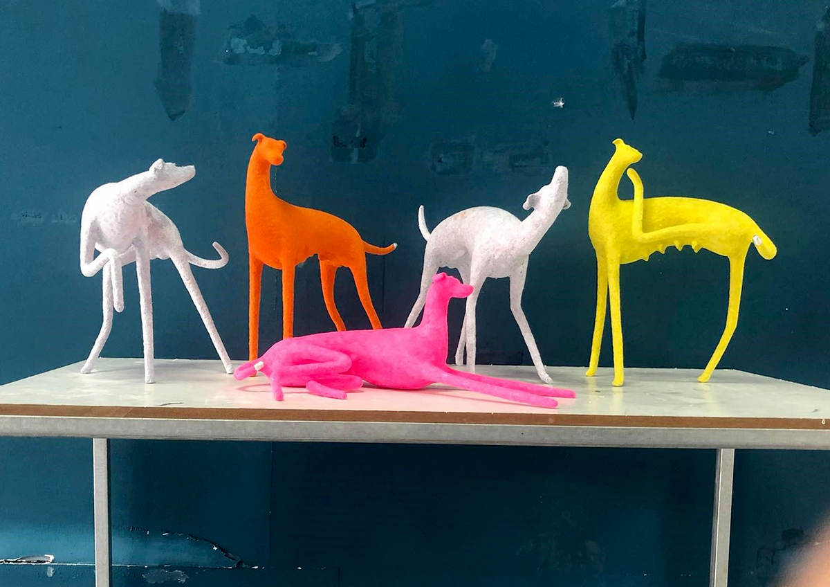 Hoặc tác phẩm về một đàn cún, với chất liệu giấy bồi:
